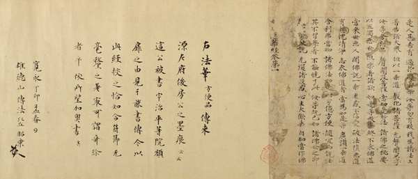 跋語(国宝「白氏詩巻」巻末 画像左半分)藤原定信筆 平安時代・保延6年(1140)