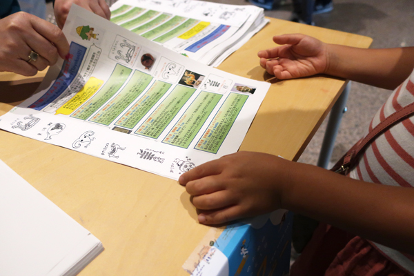 作品を見つけたら、ワークシートにシールを貼っていきましょう。