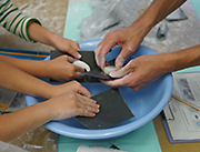 こどもたちのアートスタジオ ファミリーで勾玉作り