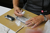 実際に滑石(かっせき)を加工して勾玉を制作してみましょう。
