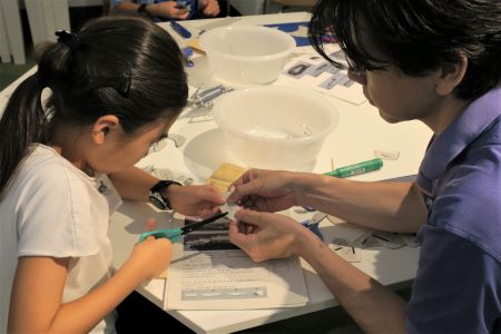 ファミリーワークショップ「からだが動くエビを作ってみよう!」