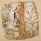 大谷探検隊の将来品を中心にホータン、クムトラ石窟等の出土品、石窟の壁画を紹介します。トゥルファンの寺院に用いられた蓮華紋の瓦塼類とベゼクリク石窟・キジル石窟の仏説法図と敦煌壁画の模本を展示します。