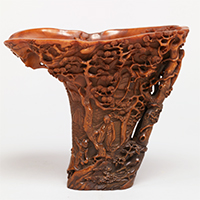 山水人物彫犀角杯