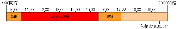 ・特別展「対決-巨匠たちの日本美術」は展示作品数が多く、観覧時間が非常に長くかかります。時間に余裕をもってお出かけください。 ・11:00~16:00の時間帯、特に土日は混雑しております。 ・展示最終週の2008年8月11日(月)~8月17日(日)は、混雑により入場制限を行う場合がございます。 これまでのところ最大で40分待ちです。 |