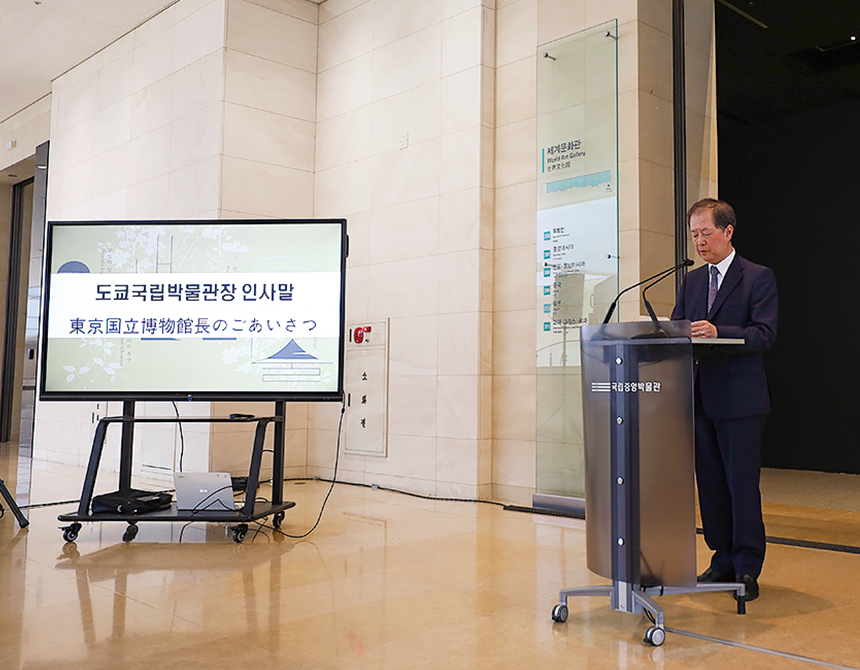 これに先立ち同館で行われた開会式・報道内覧会には、当館館長をはじめとする関係者が出席し、共同開催にあたっての韓国側の協力に謝意を表すとともに、日韓両国の文化交流の重要性を再確認し、両館のさらなる協力関係の発展を企図する機会となりました。