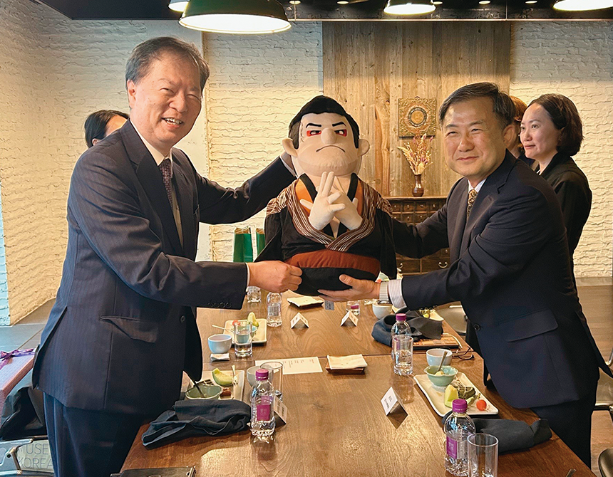 当館と国立中央博物館は2002年に学術交流に関する協定を締結して以来20年以上、多岐にわたり緊密な連携を図っています。その成果のひとつとして、両館選りすぐりの所蔵品計62件を通じて日本文化を紹介する展覧会「日本美術のとびら―四つのまなざし」(6月17日~8月10日)が国立中央博物館で開催されました。会場では縄文から江戸時代までの各作品が日本文化を捉えなおす4つのテーマに即して展示されるとともに、選択した和歌の世界の情感を体感できるデジタルコンテンツも設置され、多くの来場者が日本の美術と文化について理解を深めたとのことです。