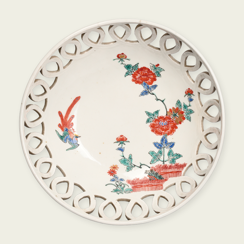 色絵透彫花鳥文皿(いろえすかしぼりかちょうもんさら)伊万里(柿右衛門様式) 江戸時代・17世紀