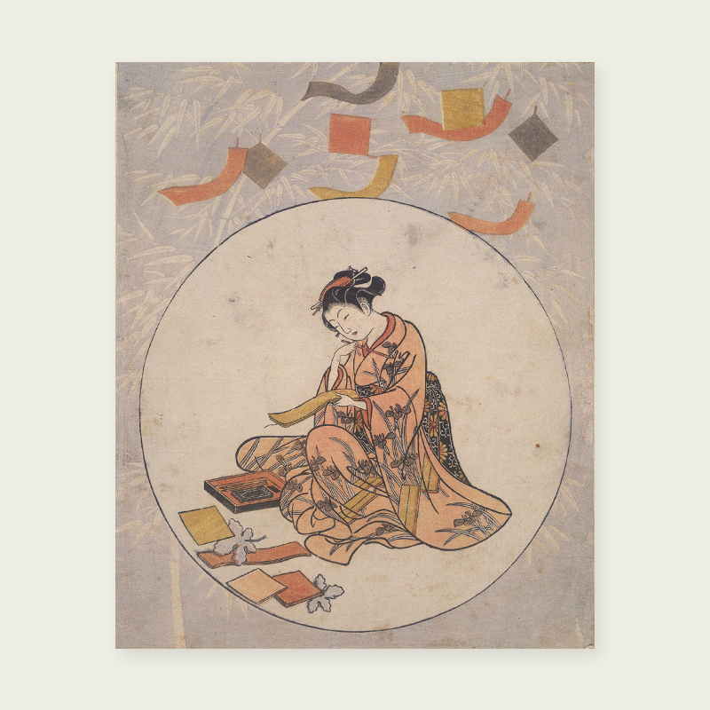 (たなばたのたんざくをかくびじん)鈴木春信筆 江戸時代・18世紀